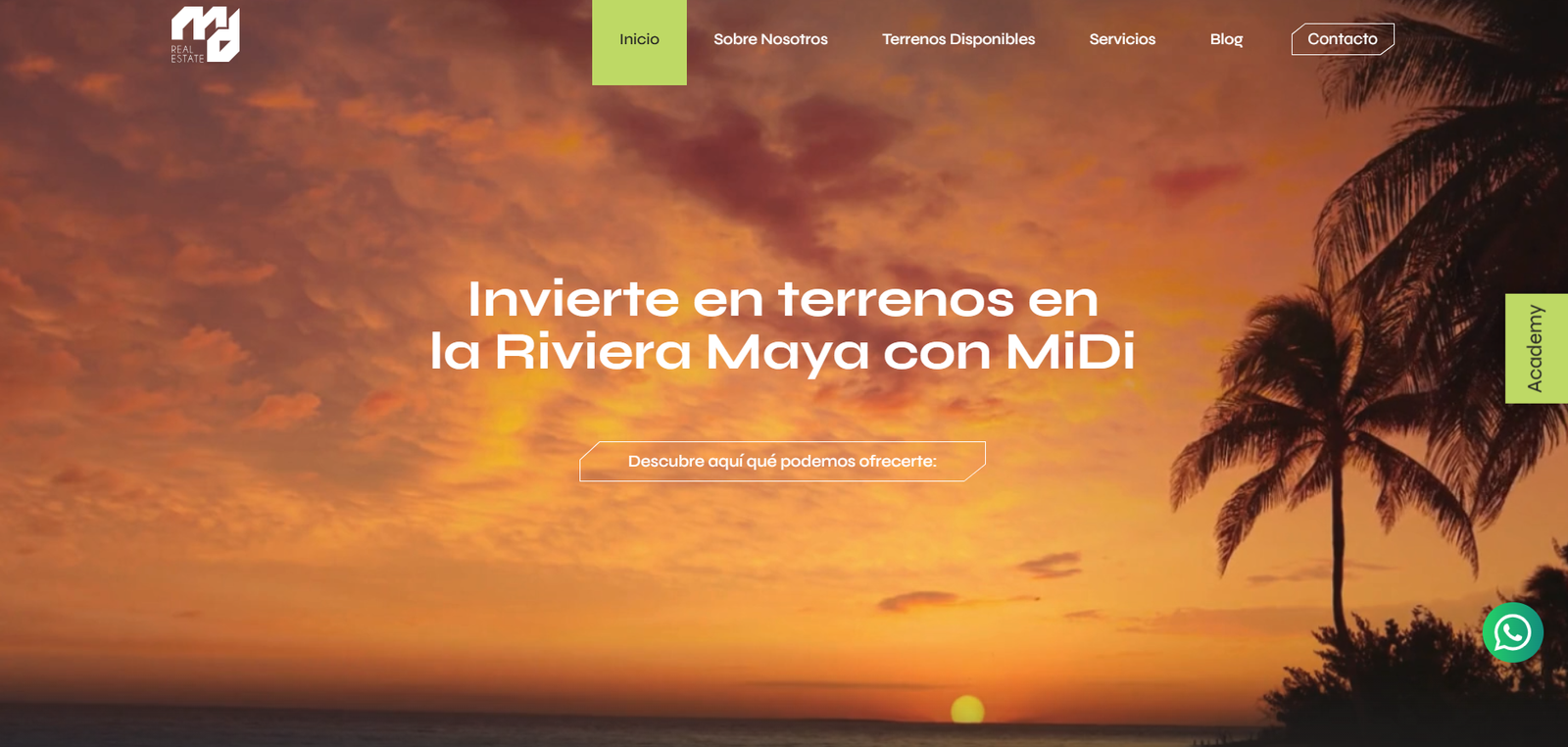 MiDi Real Estate es una empresa inmobiliaria especializada en brindar oportunidades de inversión en terrenos de alto potencial en la Riviera Maya, con un enfoque particular en Tulum, ofreciendo a sus clientes asesoría personalizada para que puedan invertir de manera segura, rentable y consciente; sus proyectos se desarrollan bajo principios de sostenibilidad y respeto al entorno, garantizando plusvalía y proyección a mediano y largo plazo.