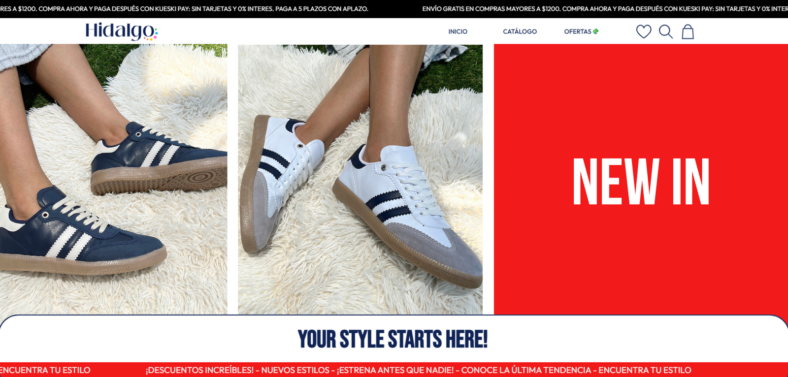 Zapaterías Hidalgo es una tienda mexicana de calzado al por menor que combina precios accesibles con calidad acorde a su valor, destacándose por su confiabilidad y tiempos de entrega consistentes en todo el país. Se actualizan constantemente para ofrecer modelos que estén a la moda, ya sea mediante colecciones nuevas o promociones relevantes. Su lema, “Tu estilo comienza aquí”, resume su propuesta: conectar a cada clienta con el estilo ideal desde la comodidad de su hogar, con una experiencia de compra confiable y actualizada.