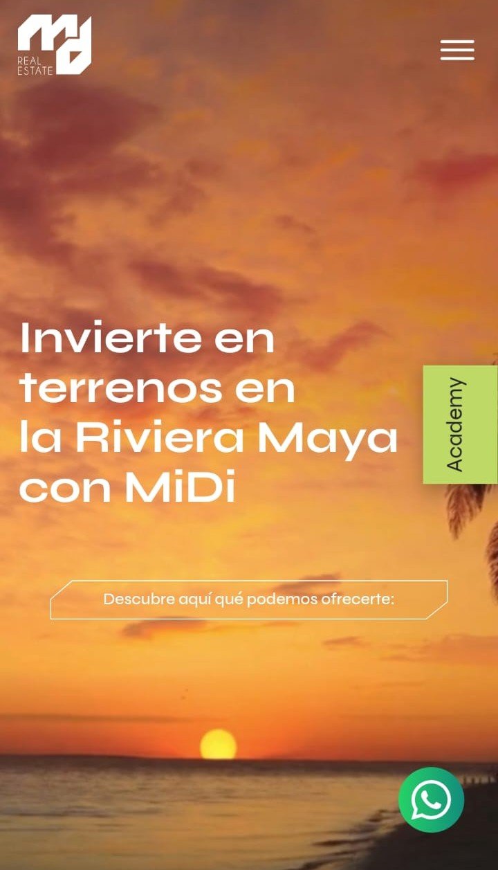MiDi Real Estate es una empresa inmobiliaria especializada en brindar oportunidades de inversión en terrenos de alto potencial en la Riviera Maya, con un enfoque particular en Tulum, ofreciendo a sus clientes asesoría personalizada para que puedan invertir de manera segura, rentable y consciente; sus proyectos se desarrollan bajo principios de sostenibilidad y respeto al entorno, garantizando plusvalía y proyección a mediano y largo plazo.